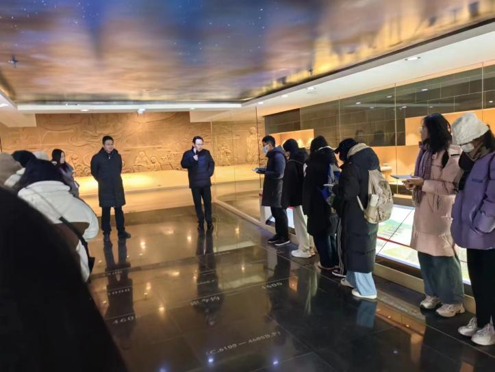 城子崖遗址博物馆馆长张宗国为文化遗产专业师生进行了详细的讲解,带领大家整体了解了新石器时代文化发展脉络及整个山东古文化发展的进程,详细介绍了龙山文化时期的代表性器物、东平陵城的历史及城子崖遗址的考古发掘过程。在参观序厅、龙山破晓、文明之星、考古圣地、济南寻根等展厅过程中,城子崖遗址博物馆办公室主任任冰通过启发式的讲解为大家上了一堂生动的传统文化实践课。