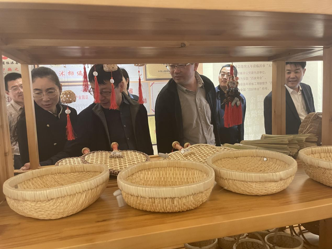 当天下午,调研组赶赴临沭县,在临沭县委常委、宣传部长刘崇宝,曹庄镇党委副书记、镇长邢雨亭等人陪同下,开展朱村文旅融合及国家级非物质文化遗产临沭柳编产业发展调研。考察组先走进中国柳编非遗文化馆(朱村景区),了解临沭柳编保护传承情况,随后深入荣华柳编非遗工坊(欧拉农场),听取产业发展情况介绍。
