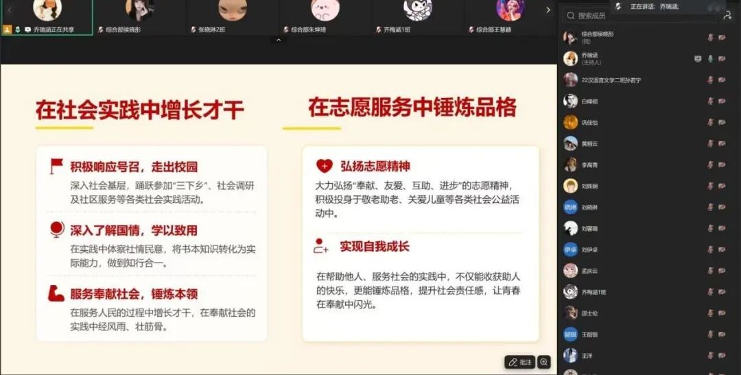 春回大地,万物竞发。一堂以“青春向党”为核心的新春党课在融融暖意中准时开讲。本次主题党日以新春为契机,将春节的家国情怀与初心使命深度融合,从“春风化雨,感悟初心使命”的精神滋养,到“回望百年征程,青春与党同行”的历史回响;从“践行时代新声,勇担青年使命”的时代叩问,到“展望砥砺前行,书写青春华章”的奋进号召,四个篇章层层递进,引导全体党员在阖家团圆的文化内核中感悟青年与党的紧密联系,在百年青年的奋斗足迹中汲取前行力量,对如何将个人理想融入国家发展有了更为清晰的认知与深刻的共鸣。