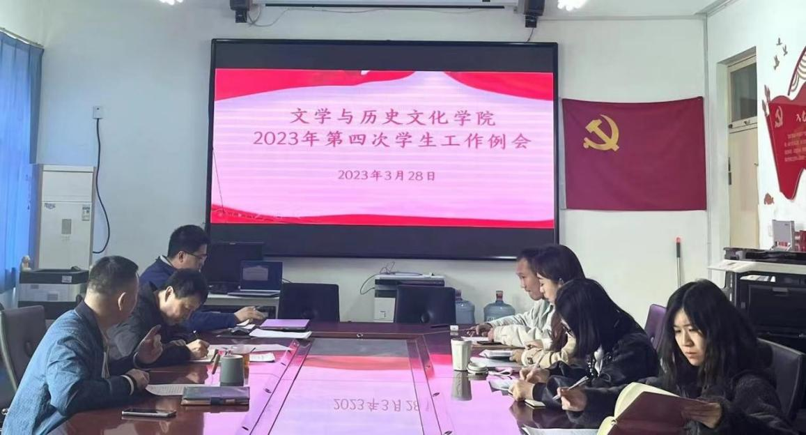 为进一步落实学校学生工作会议精神,推进文学与历史文化学院学生工作开展,3月28日,文学与历史文化学院召开学生工作例会,学院领导班子成员和全体辅导员参加会议。会议由党委副书记何睿主持。