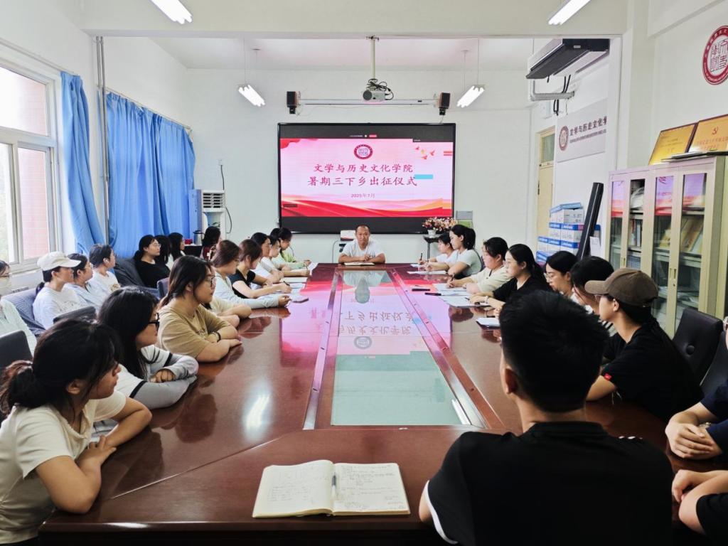 为了强化思想引领,明确活动初心,扎实推进2025年暑期“三下乡”社会实践活动有序开展,7月11日,文学与历史文化学院在学院会议室举行了暑期三下乡出征仪式,团总支副书记徐超及各实践队参与本次活动。