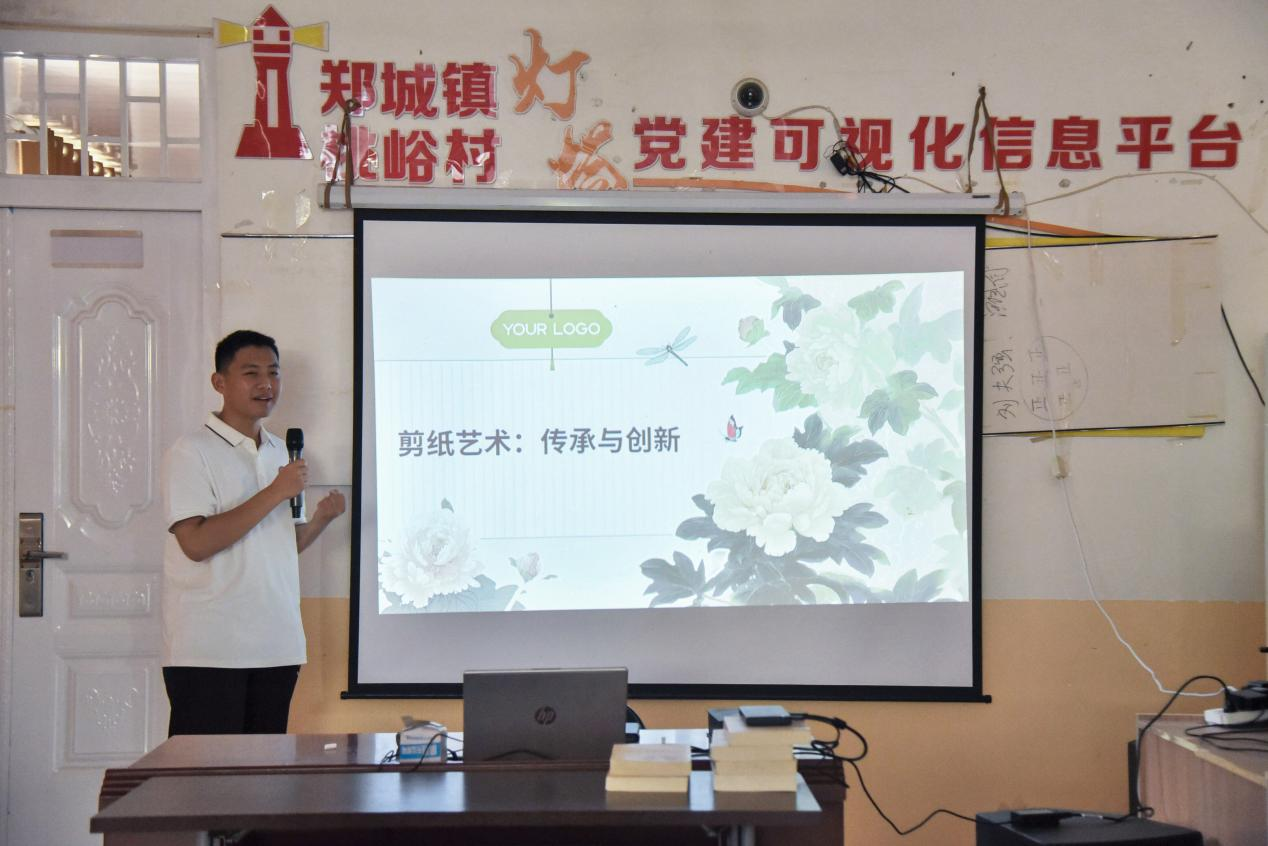 剪纸课上,队员们先播放剪纸动画《葫芦娃》,以熟悉角色与独特形式吸引孩子注意力。随后讲述剪纸历史:从杜甫《彭衙行》的记载到故宫坤宁宫的“囍”字剪纸,让孩子们在趣味中了解传承脉络。现场示范中,普通彩纸转眼变精巧作品,引得阵阵惊叹。