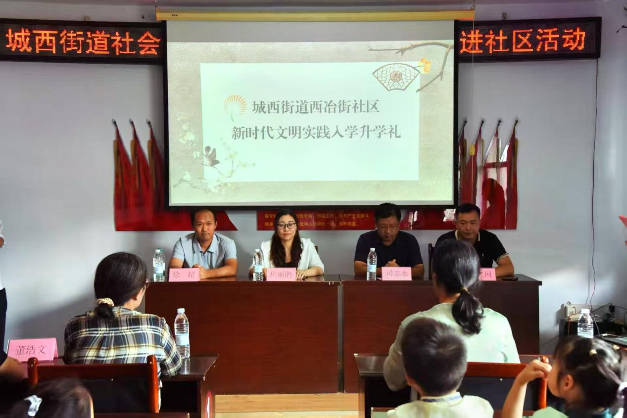 下午,“蒙以养正·启智承典”升学礼暨国学课堂实践活动在城西街道西冶街社区隆重举行。活动在庄严肃穆的鼓声中启幕。文学与历史文化学院党委副书记焦丽鹃发言,以“三重使命”锚定实践航向:号召青年做传统文化的“传承者”、文明实践的“传播者”、服务群众的“奉献者”,将典籍智慧转化为社区服务动能;城西街道党工委副书记司志永勉励孩童“从文化瑰宝汲取担当之力”,用心感受和学习国学文化。