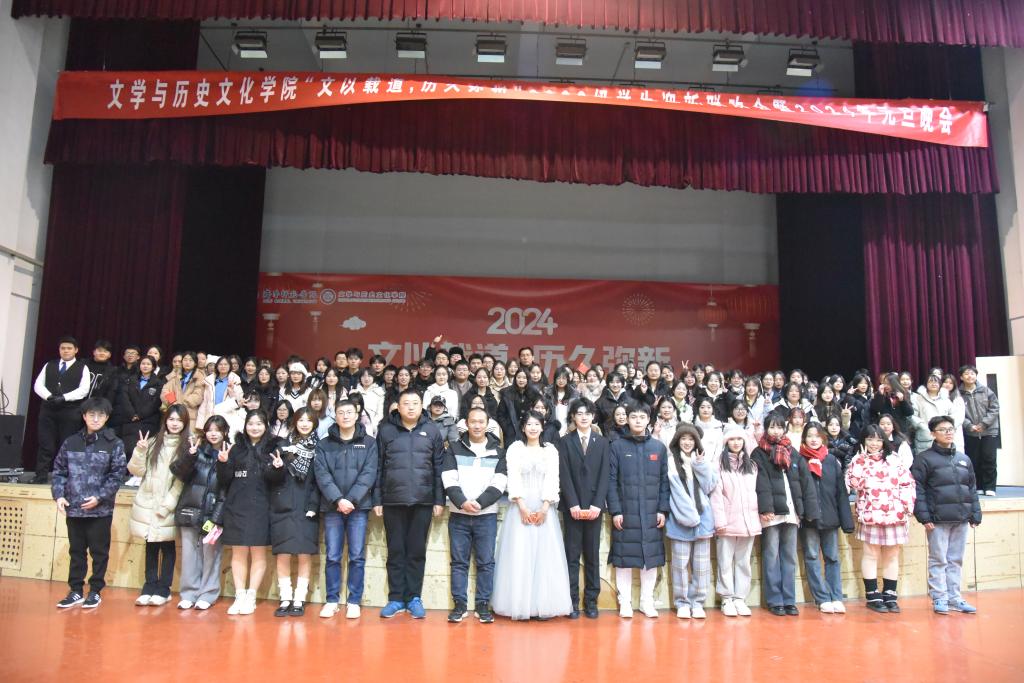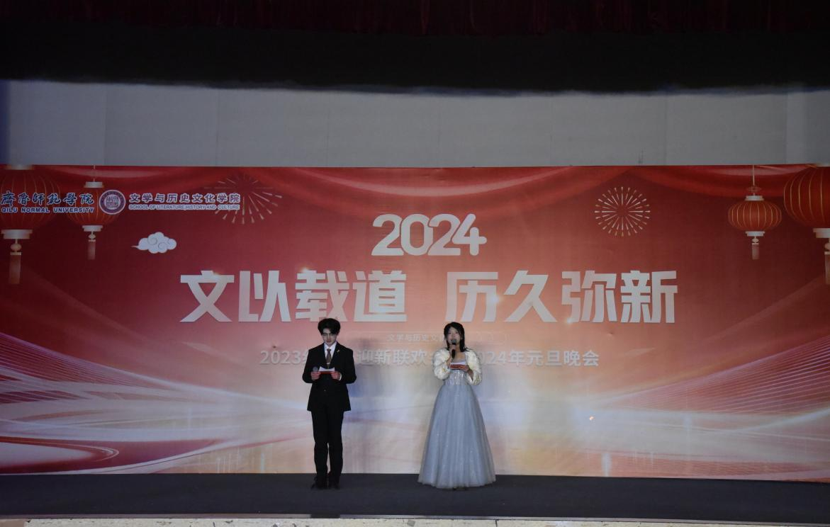 岁序常易,华章日新。文学与历史文化学院“文以载道,历久弥新”2023级学生迎新联欢会暨2024年元旦晚会圆满结束,这是一场师生精心准备的视听盛宴。现场歌曲、舞蹈、小品、情景剧共14个节目的轮番上演,带给我们欢声与笑语,青春与活力,展现出我院学子的动人风采,彰显了文史学院的强大凝聚力。