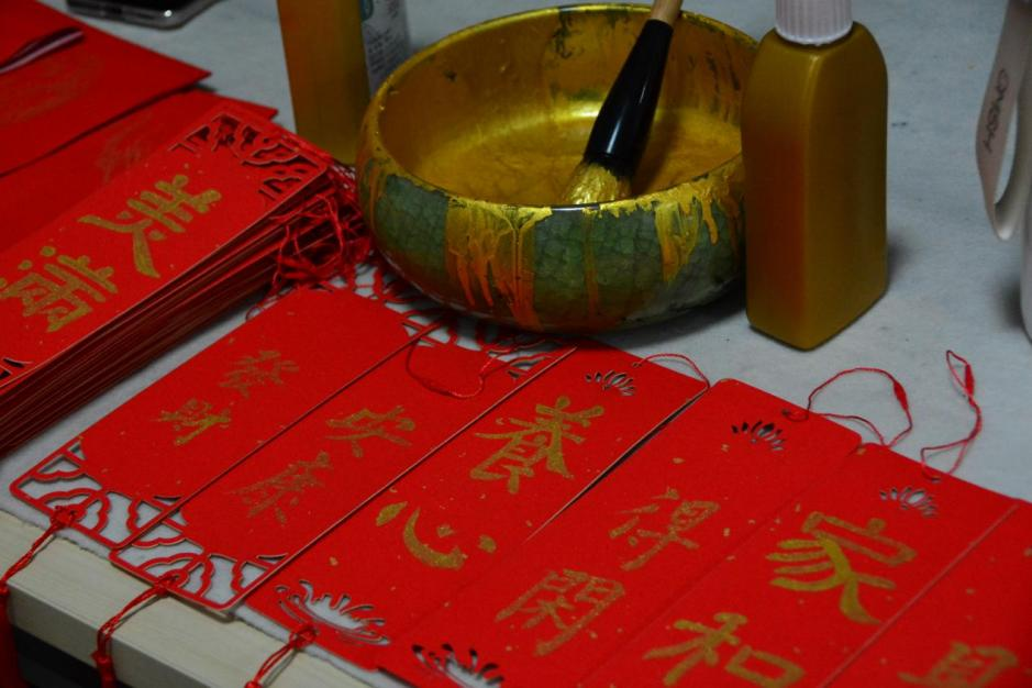 本次活动特别邀请中国硬笔书法协会会员、齐鲁师范学院特聘书法教师王光华现场泼墨,书写春联。同学们也准备了书签、贺卡、福字等,把新春的期盼与祝福稳稳传递。活动现场,墨香四溢,红纸铺展,师生们以笔会友,以墨传情,向全校师生献上美好祝福,如同冬日里的一缕暖阳,为寒冷的季节增添了温情与暖意。