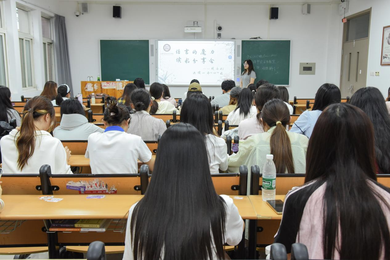 为深化大学生心理健康素养,助力学生提升心理认知,2025大学生心理健康宣传活动月期间,6月6日晚,由学生工作部(处)主办,文学与历史文化学院承办的“语言的魔力”我与AI共读一本“心”术读书分享会在章丘校区开展。各学院学生代表参与活动。