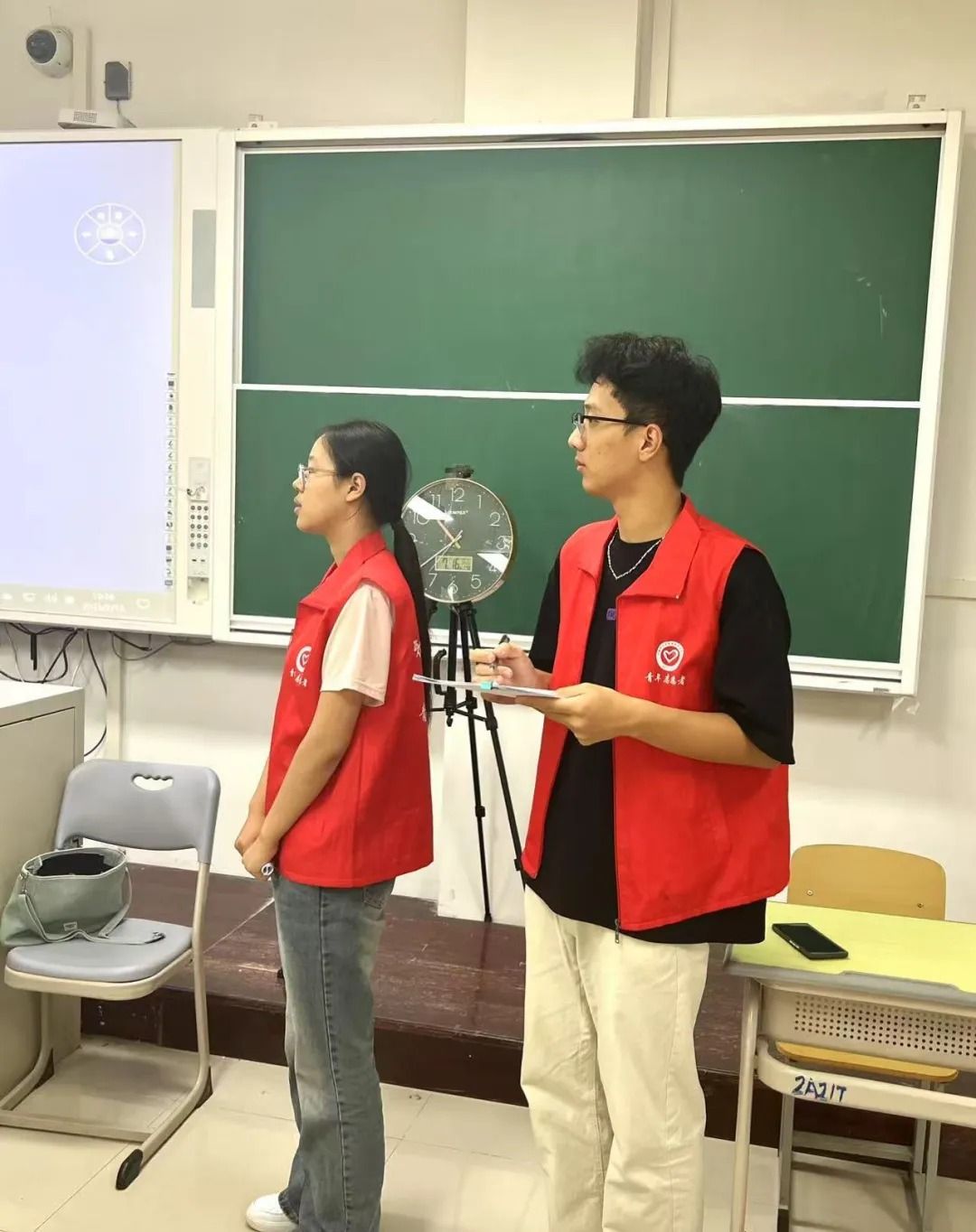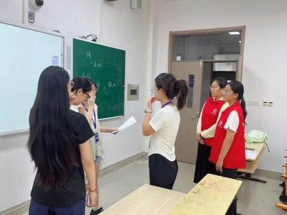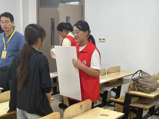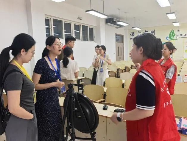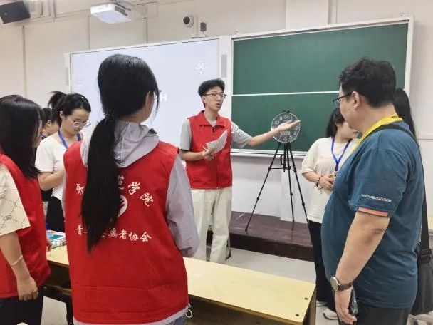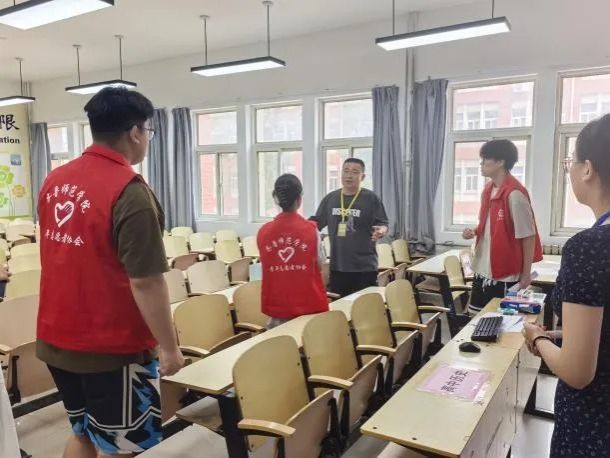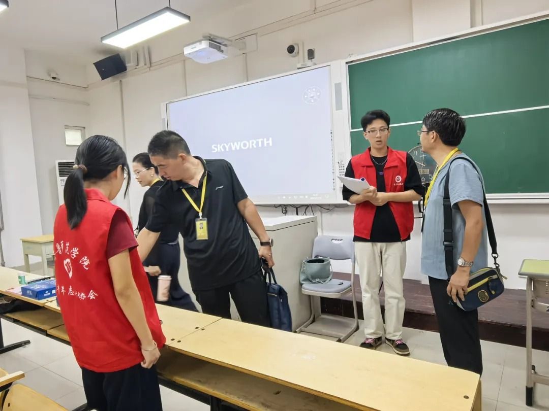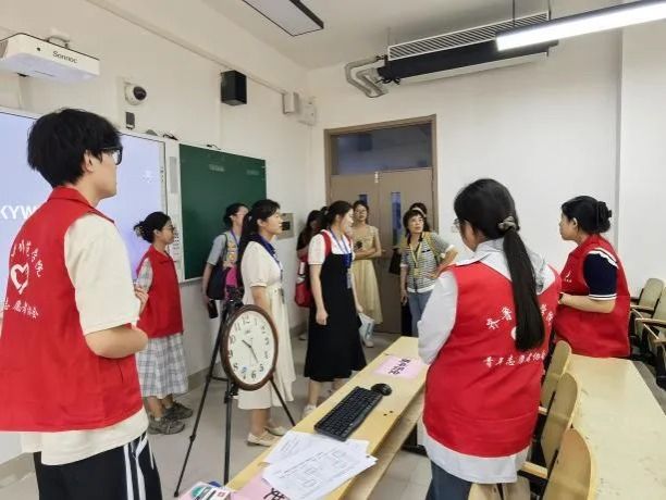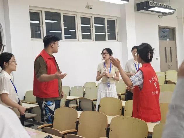 7月9日,大赛号角吹响,学院组织动员的文学与历史文化学院46名青年志愿者迅速集结,进入“备战”状态。赛前关键阶段,全员投入高强度集训,熟悉场地规则,精进服务技能。直播设备与观摩组精益求精,对所辖教室多媒体及直播系统进行了6轮以上反复调试,力保万无一失;比赛组、准备组与机动组则在学院领导老师细致的服务预案与流程指导下, 展开多轮情境模拟,明确分工,将服务流程与引导路线打磨至每个细节。7月12日的集体模拟与14日的正式预演,成为细节优化的“冲刺跑”——钟表高度、网线位置、标准话术、物料清单,数十项细微之处皆经精心打磨。汗水浸透衣衫,日行万步亦是常态,疲惫之中,热情未减,志愿者团队时时以饱满的精神、昂扬的状态迎战各项挑战,只为赛事正式开启筑牢坚实保障。