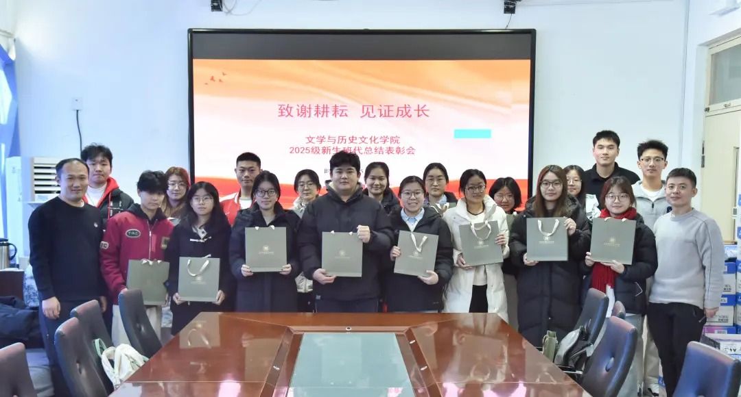 为充分肯定班级代理班干部在本学期的辛勤付出,进一步凝聚学生工作团队合力,12月18日,文学与历史文化学院召开2025级新生班代总结表彰会。学院团总支副书记徐超主持,辅导员朱迪康、张宸硕,学生组织主席团成员段正非、李欣洁及2025级新生班代参会。
