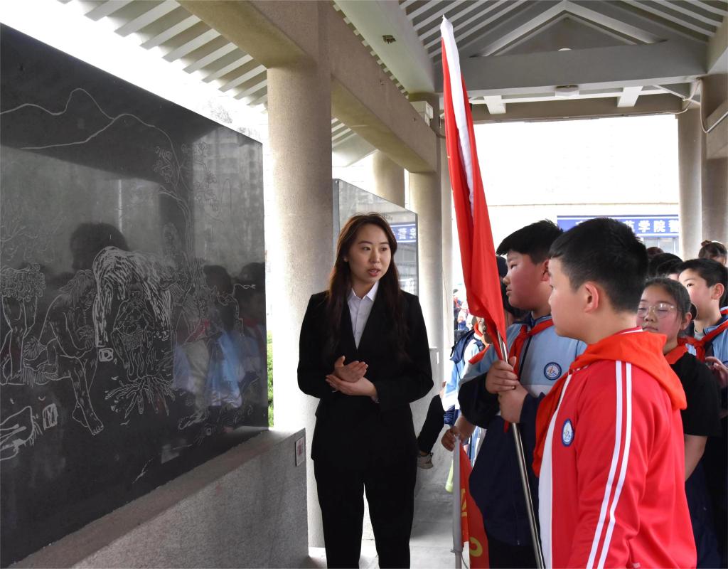 4月1日下午,齐鲁师范学院附属小学400余名师生到我校进行研学。为充分展现本校丰富的齐鲁文化底蕴以及对培养君子品格的重视,文学与历史文化学院金声解说团为小同学们进行了文化长廊的全程讲解。