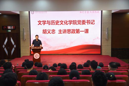 学院党委书记胡义忠为全体新生讲授思政第一课。他强调,作为新时代青年,新生们应肩负起实现中国梦的责任与使命。新时代属于每一个人,大家既是新时代的见证者也是开创者。同学们要心怀信仰,知党情、感党恩、跟党走,不断提升作为中国人的志气、骨气和底气。他还强调了学习专业知识的重要性,鼓励同学们加强交流,提升团队协作能力,勇于迎接挑战,在实践中不断锤炼自我。