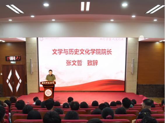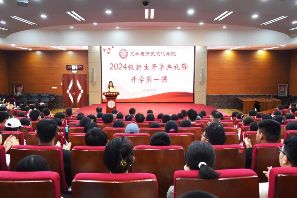 9月8日,文学与历史文化学院在第一学术报告厅召开2024级新生开学典礼暨开学第一课。学院领导班子成员、全体辅导员、教师代表及2024级全体新生参加。典礼由学院党委副书记焦丽鹃主持。