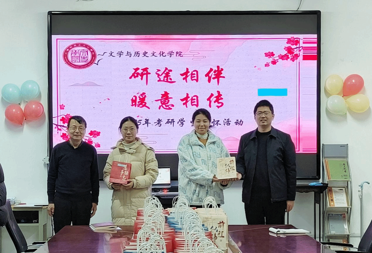 12月16日,文学与历史文化学院组织开展“研途送暖,聚力前行”考研关怀活动,为正在紧张备考2025年研究生考试的同学送去关心与鼓励。学院院长张文哲、党委书记胡义忠、副院长谢文峰及辅导员徐超、刘冠群、张宸硕等与考研学生代表进行了交流。