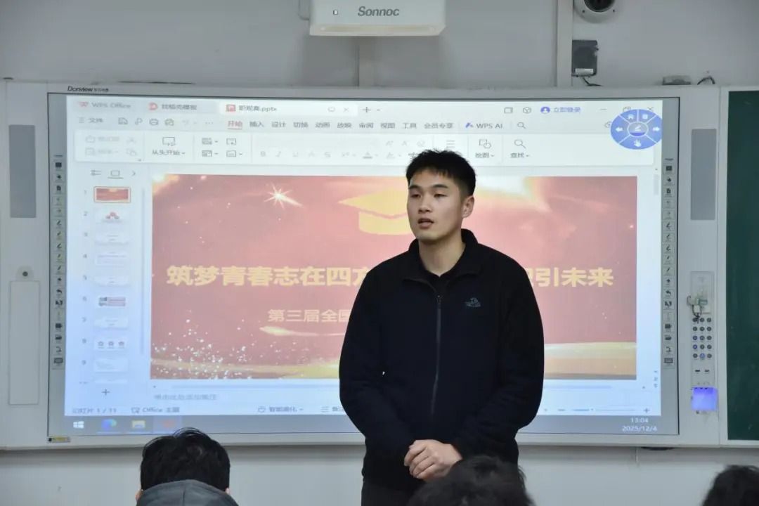 大赛伊始,张宸硕以当下职业形势为聚焦点,从个人能力提升、未来规划几个方面提出建议,并强调此次比赛的重要性,呼吁学生积极参赛。