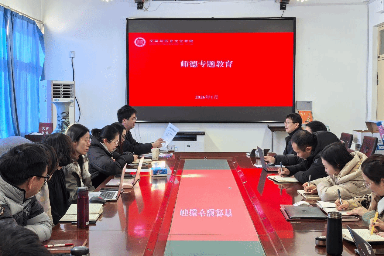 为加强教师队伍建设,筑牢师德底线,2026年1月22日,文学与历史文化学院召开师德师风警示教育专题会。学院党委书记胡义忠、院长张文哲、党委副书记焦丽鹃、副院长朱振华、谢文峰及全体教师、辅导员参会。