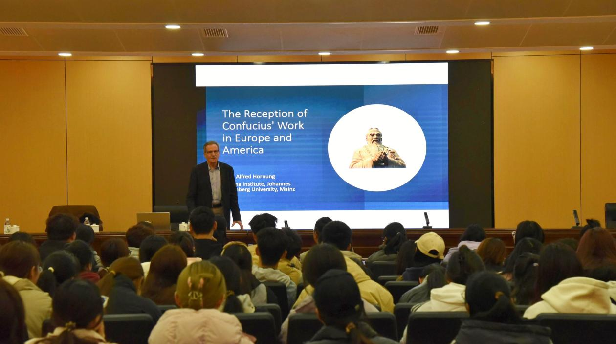 报告会上,霍农院士以17世纪至19世纪的关键时刻在欧美国家翻译并出版的孔子著作为例,指出孔子的思想丰富了欧洲思想家的知识,并产生了一种跨文化解释学的形式,孔子思想对人的道德行为具有很重要的影响,是中国文明的重要代表。霍农教授的报告生动形象、内涵丰富,并热情地与师生们互动交流,为我们更好地弘扬中华优秀传统文化、培育践行君子人格提供了国际视野。